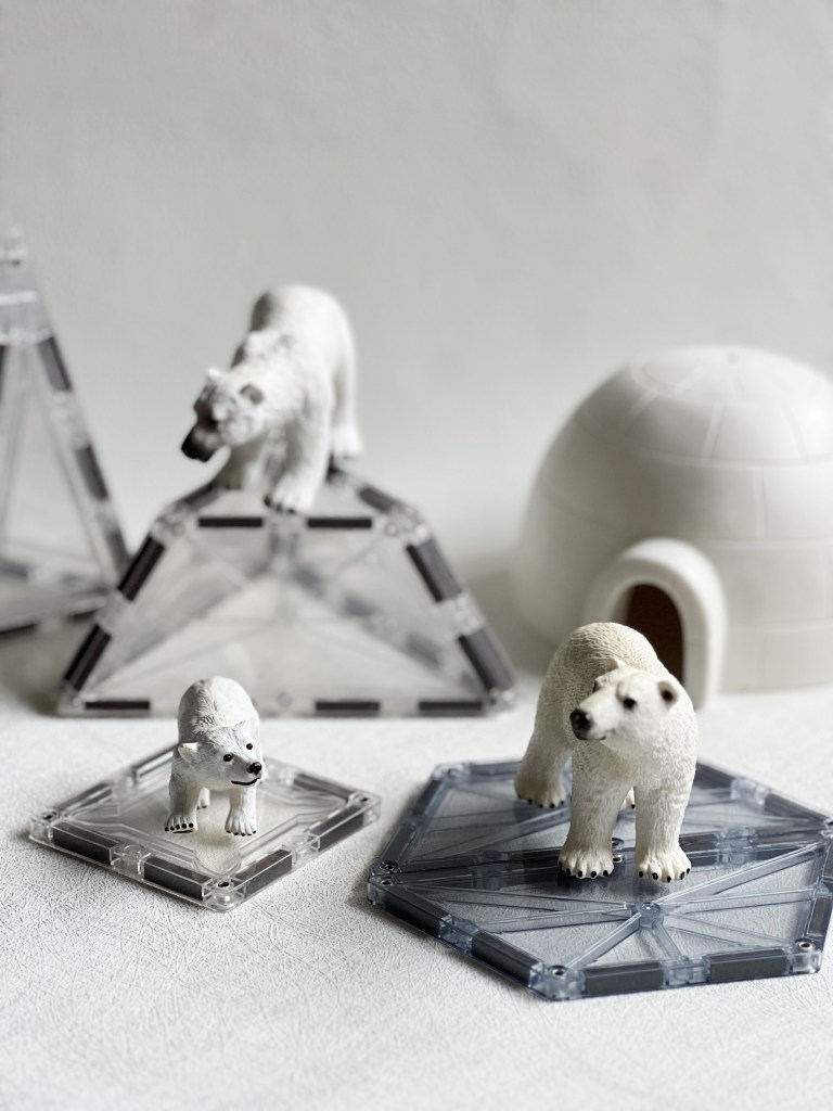 Magna-tiles 的特色是有許多主題性的磁力片,像是動物主題、冰雪主題…等。
