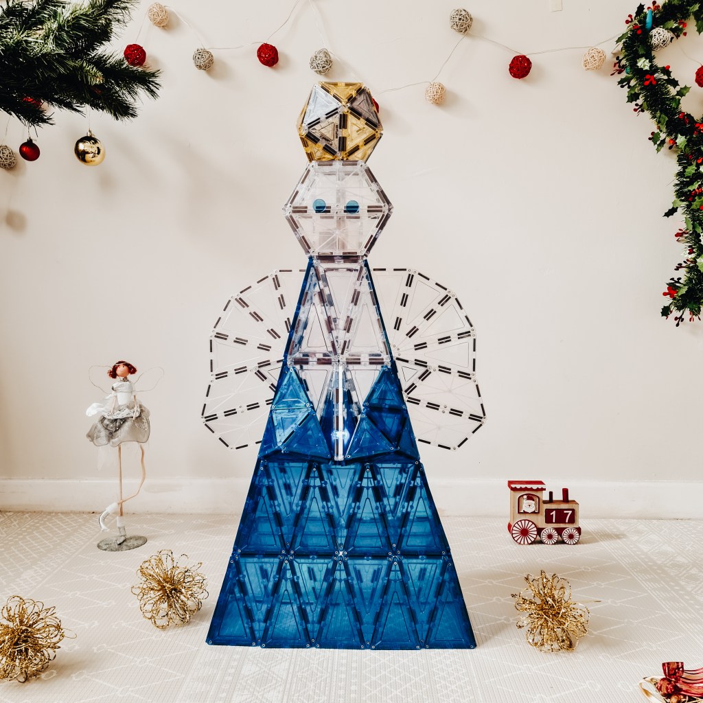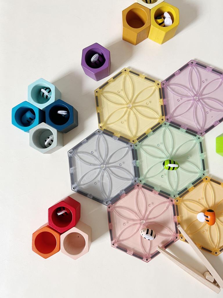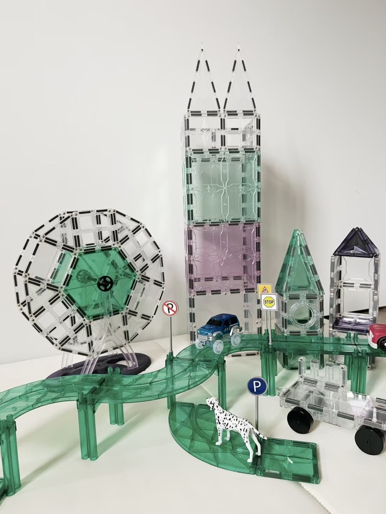 我們家選擇的澳洲 Magblox 磁力片,使用加大、加粗的磁鐵,固定在磁力片的端點,磁力算是業界頂標,作品更安全穩固,垂直連接、向上堆疊都不是問題,玩樂同時培養立體空間概念。